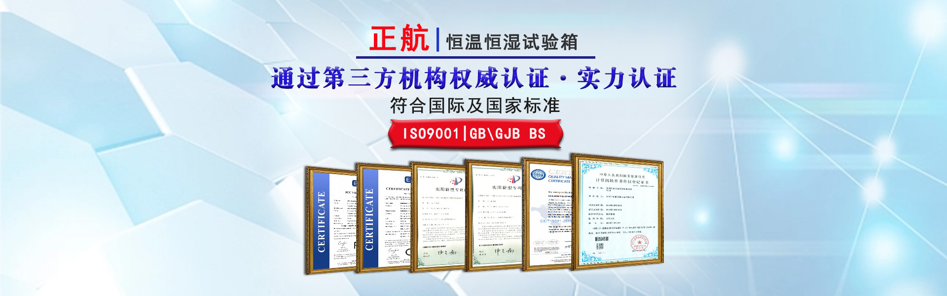 榮獲國家高新技術企業(yè)、廣東優(yōu)質制造商、守合同重信用企業(yè)等榮譽、CNAS認證企業(yè)(第三方檢測權威機構)及30+項專利證書,并通過lSO9001:2015質量體系認證、CE、SGS認證滿足GB、GJB、IEC、MIL-STD等試驗標準要求。